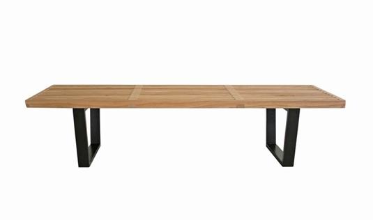 Reproduction of Nelson's simple wooden bench design. Solid hardwood construction and sleek design.