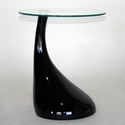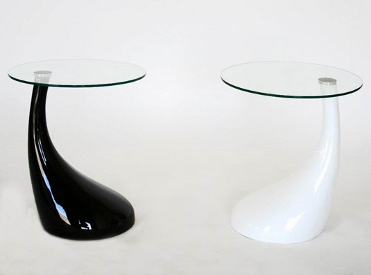 Plastic base round coffee table available in black and white.