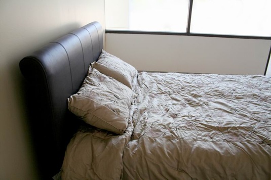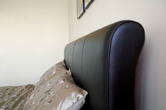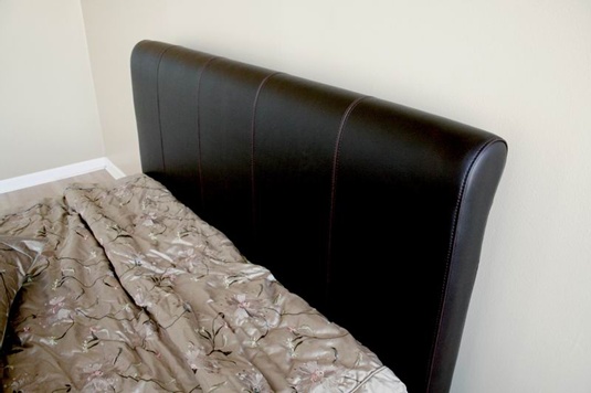 and the back, Wooden bowed slats, back of the headboard is black fabric