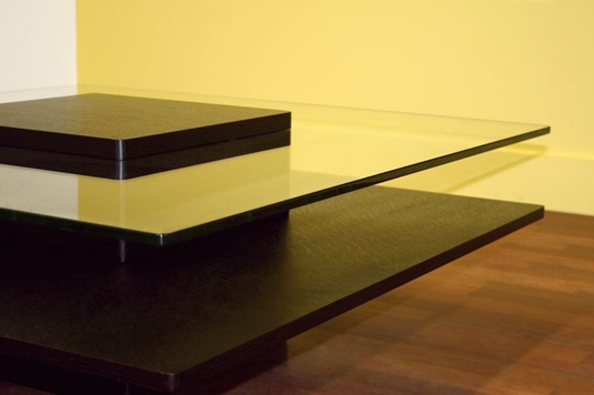 Dimensions: Table: 39.25"W x 39.25"D x 13"H Glass: 1/2" thick Wood Table: 7.75"H from ground and 3/4" thick
