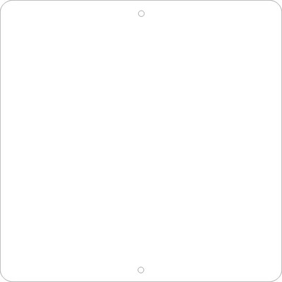 Our standard .063 gauge, anodized aluminum blank. 1/2" radius rounded corners, and 3/8" holes for post mounting punched with two center-to-center holes 3/4" center from top and bottom unless otherwise noted. Note: Corners are rounded with a Lassco CorneRoundeR hand tool and create a slight bend on the corners. (see the sample picture in the gallery)