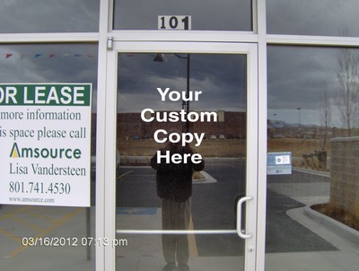 Customized vinyl graphic for your store front, door, window or vehicle your design.