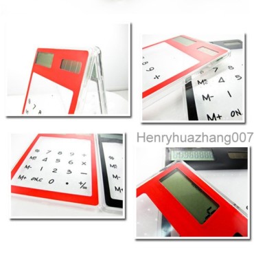 Transparent Ultra-slim calculator Touch screen technology 8-digit LCD display 20 touch screen keys Solar powered, no battery needed