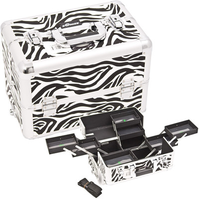 Makeup Train Case Customize Top part Organizer E336 8 trays zebra silver diamond