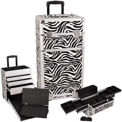 Makeup Artist Cosmetic Rolling Case with Drawers CR1 Zebra Animal Pattern Print