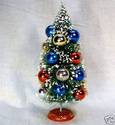 VINT 8-3/4" BOTTLE BRUSH TREE ORNS* MICA SNOW GLASS ORN