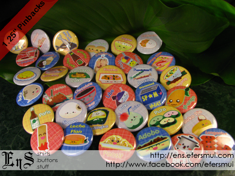 Thirty-Six (36) 1.25" pinback buttons featuring different Filipino dishes and staples!