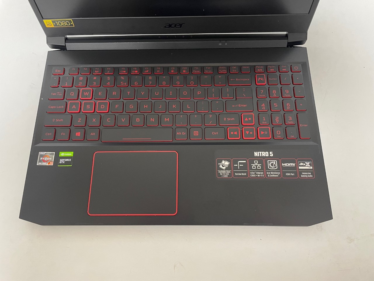 Acer Nitro 5 AN515-44 15.6-Inch Gaming Laptop, 256GB SSD, 8GB RAM, 4GB Nvidia GeForce GTX 1650 Dedicated Graphics plus AMD Radeon graphics, AMD Ryzen 5 4600H 3.00GHz processor, 1920 x 1080 maximum resolution, webcam & mic, 10-key, with Windows 10 Pro installed.