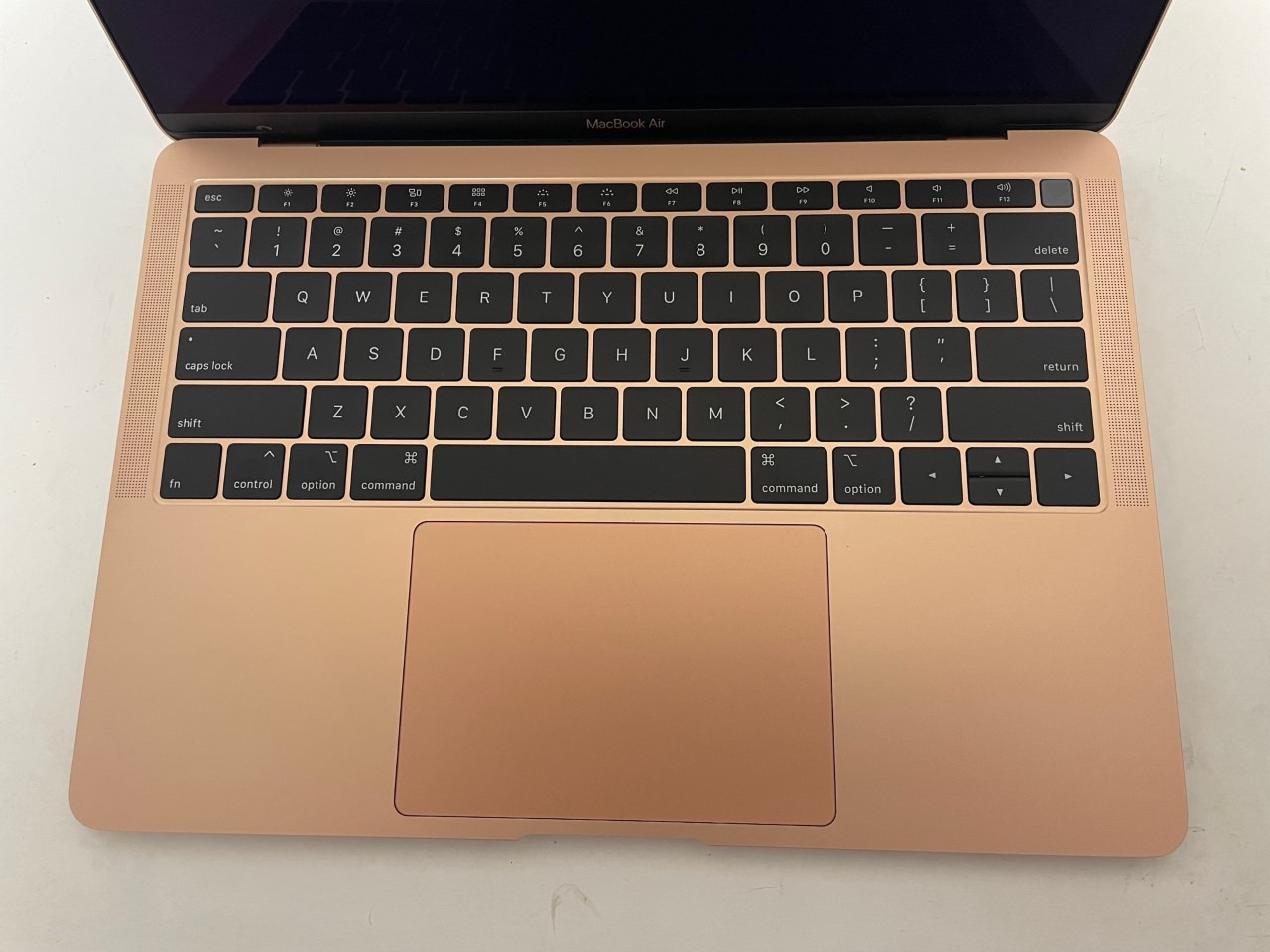 This MacBook Air shows some normal signs of use which includes a small crack to the plastic under the screen.