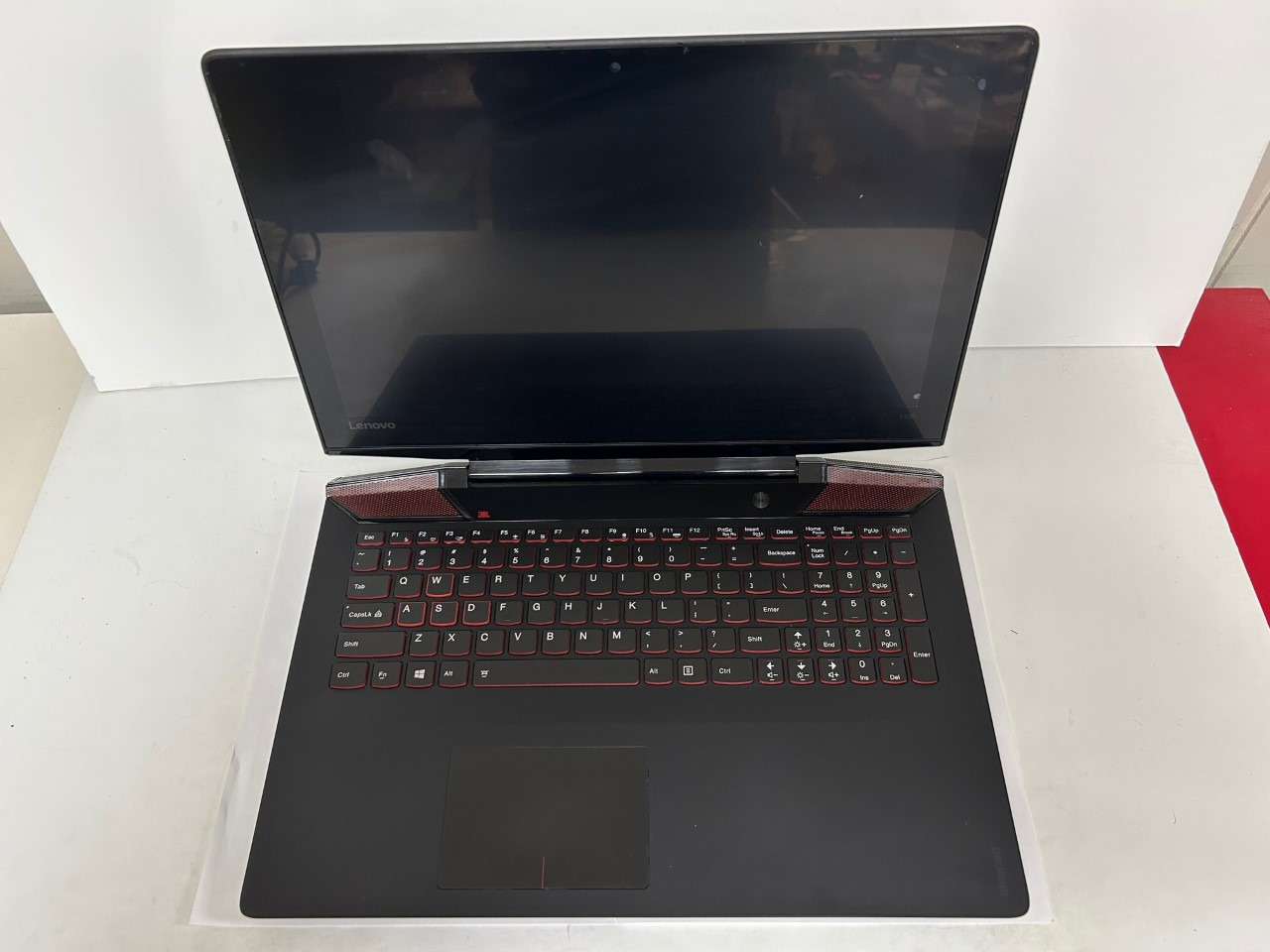 Lenovo Y700-15ISK 15.6" Gaming Laptop PC powered by an Intel i7-6700HQ Processor, 1TB HDD, 32GB RAM, 4GB Nvidia GTX960M Graphics, Webcam, 1920x1080 Non-Touchscreen, Backlit keyboard, combo audio, Bluetooth, and Windows 10 Pro installed.