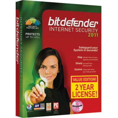 Int Sec 2011 3PC 2YR. BitDefender Internet Security 2011 provides 3 PCs with TWO years of protection against viruses, hackers, spam, and identity theft? without slowing you down! Includes: Firewall, iPhone-friendly Parental Controls, IM Encryption, QuickScan, Video Tutorials, a customizable dashboard, Home Network Management, Laptop Mode, Gamer Mode, automatic hourly updates, and more!