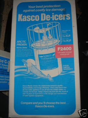This is a two-item auction: a brand new Kasco model F2400 1/2 HP De-icer/Water Agitator and a brand new Kasco C-20 Time and Temperature De-Icer Control. They are both in their original box