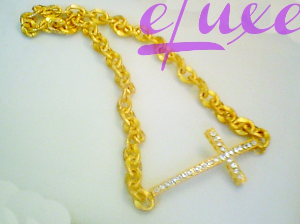 Pave Crystal Encrusted Cross on Gold Chunk Necklace