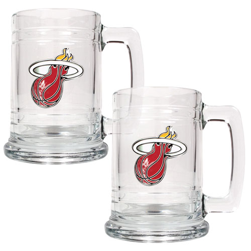 Miami Heat NBA 2pc 15oz Glass Tankard Set - Primary Logo