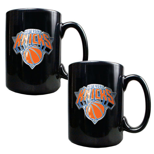 New York Knicks NBA 2pc Black Ceramic Mug Set - Primary Logo