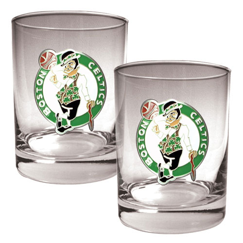 Boston Celtics NBA 2pc Rocks Glass Set - Primary Logo
