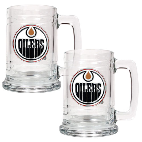 Edmonton Oilers NHL 2pc 15oz Glass Tankard Set- Primary Logo