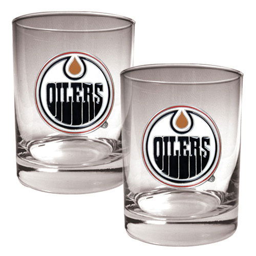 Edmonton Oilers NHL 2pc Rocks Glass Set - Primary Logo