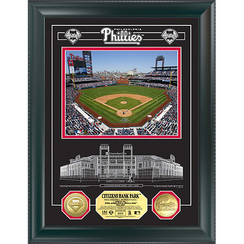 Citizens Bank Park Archival Etched Glass W/ Two Gold Coins