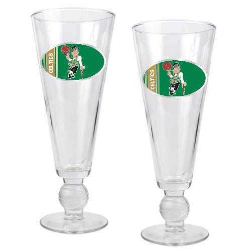 Boston Celtics NBA 2pc Pilsner Glass Set with Basketball on stem - Oval Logo