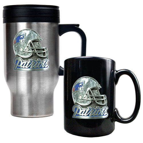 New England Patriots NFL Travel Mug & Ceramic Mug Set - Helmet logo