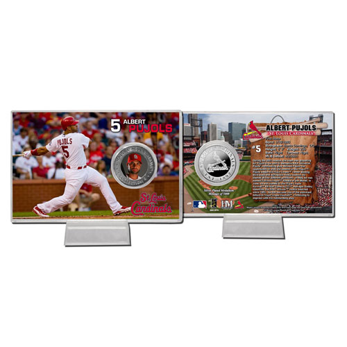 The 4x6" acrylic holder features a 39mm Silver plated Coin with the players image embedded in the center. Featured in the case with the coin is a color action image and player bio on the back. Limited Edition 5000 and Officially Licensed by MLB and MLBPA."