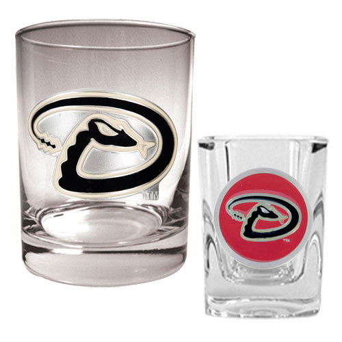 Arizona Diamondbacks MLB Rocks Glass & Square Shot Glass Set - Primary Logo