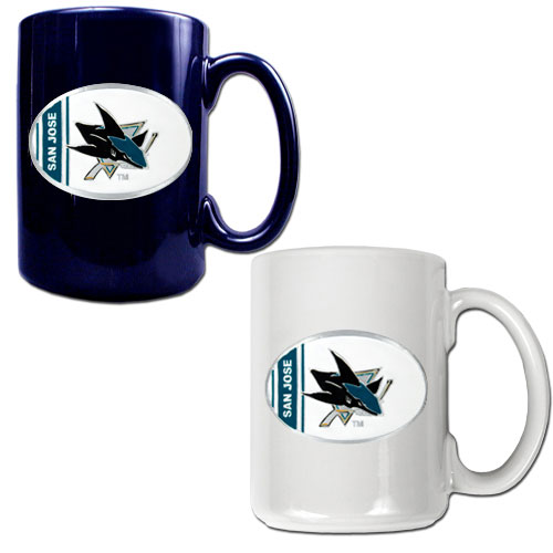 San Jose Sharks NHL 2pc 15oz Ceramic Mug Set - One Blue Mug & One White Mug with Oval Logo