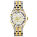 A versatile two-tone watch featuring the officially licensed logo laser etched in 23K gold on the dial with twelve 23K gold indices; all protected by a genuine glass crystal. The brushed stainless steel case includes a rotating bezel and 23K gold accents. The adjustable Stainless Steel bracelet is also accented with 23K gold. Each watch features the accuracy and reliability of a Japan Quartz movement; water resistant to 5 ATM (165 ft); and our Limited Lifetime Warranty