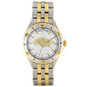 A versatile two-tone watch featuring the officially licensed logo laser etched in 23K gold on the dial with twelve 23K gold indices; all protected by a genuine glass crystal. The brushed stainless steel case includes a rotating bezel and 23K gold accents. The adjustable Stainless Steel bracelet is also accented with 23K gold. Each watch features the accuracy and reliability of a Japan Quartz movement; water resistant to 5 ATM (165 ft); and our Limited Lifetime Warranty