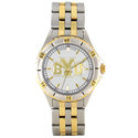 A versatile two-tone watch featuring the officially licensed logo laser etched in 23K gold on the dial with twelve 23K gold indices; all protected by a genuine glass crystal. The brushed stainless steel case includes a rotating bezel and 23K gold accents. The adjustable Stainless Steel bracelet is also accented with 23K gold. Each watch features the accuracy and reliability of a Japan Quartz movement; water resistant to 5 ATM (165 ft); and our Limited Lifetime Warranty