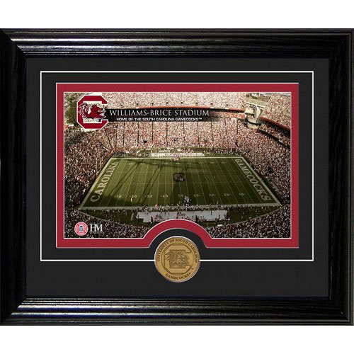 An exclusive photo of the University football field double matted with a minted antique bronze University Logo coin and featured in an 10x12 molded wood frame with an easel back for easy display! Ready to hang on the wall or display on your desk or shelf