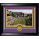 An exclusive photo of the University football field double matted with a minted antique bronze University Logo coin and featured in an 10x12 molded wood frame with an easel back for easy display! Ready to hang on the wall or display on your desk or shelf