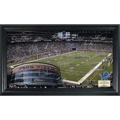 Featured in a 12? x 20? wood frame are the facsimile (exact replica) signatures of your favorite NFL teams players spread out on a glossy image of their home field and each is individually numbered. Protected under plexi glass this item is a Limited Edition of only 2010 and officially licensed by the NFL and NFLPA.