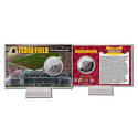 A 4? x 6? acrylic coin holder features color images of your favorite team's Home Field with Stadium history listed on the back along with a 39mm minted Silver plated commemorative Team Coin with the Stadium minted on the reverse. Each Coin Card is a limi