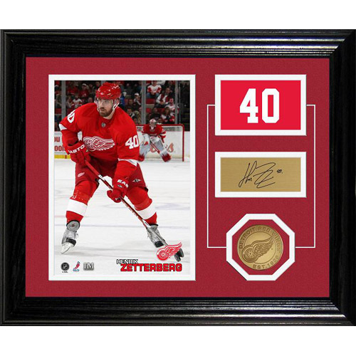 Limited Edition 10?x12? frame with an easel back and double matting features a photo of your favorite NHL Player in action as well as his jersey number; his facsimile (replica) signature engraved in a nameplate and a Bronze 39mm Team Commemorative Coin. A numbered COA is pasted to the back of each frame. LE 2500 and Officially Licensed by NHL and NHLPA.