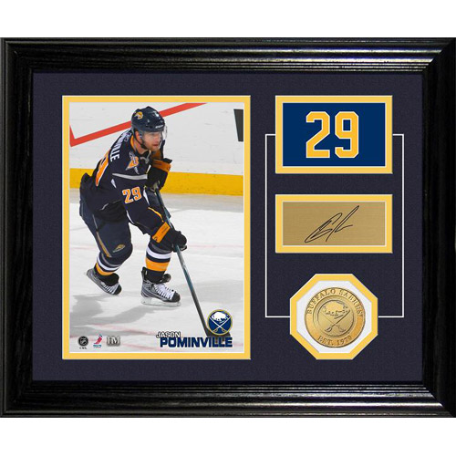 Limited Edition 10?x12? frame with an easel back and double matting features a photo of your favorite NHL Player in action as well as his jersey number; his facsimile (replica) signature engraved in a nameplate and a Bronze 39mm Team Commemorative Coin. A numbered COA is pasted to the back of each frame. LE 2500 and Officially Licensed by NHL and NHLPA.