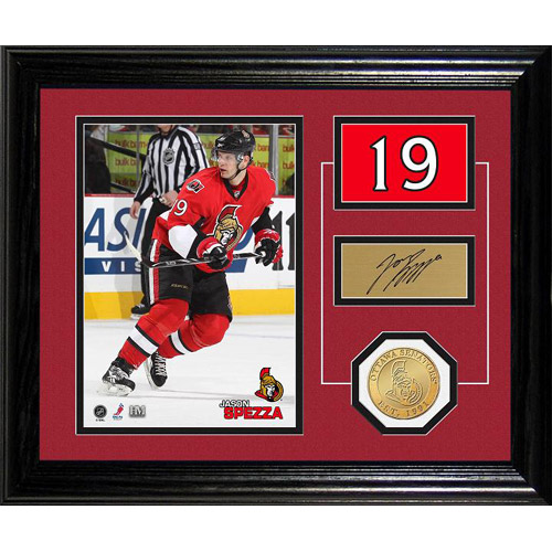 Limited Edition 10?x12? frame with an easel back and double matting features a photo of your favorite NHL Player in action as well as his jersey number; his facsimile (replica) signature engraved in a nameplate and a Bronze 39mm Team Commemorative Coin. A numbered COA is pasted to the back of each frame. LE 2500 and Officially Licensed by NHL and NHLPA.