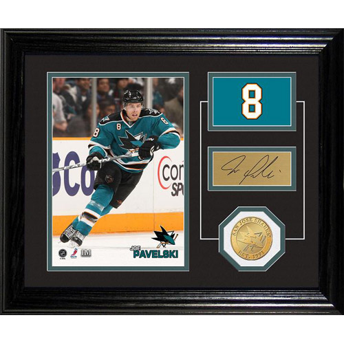 Limited Edition 10?x12? frame with an easel back and double matting features a photo of your favorite NHL Player in action as well as his jersey number; his facsimile (replica) signature engraved in a nameplate and a Bronze 39mm Team Commemorative Coin. A numbered COA is pasted to the back of each frame. LE 2500 and Officially Licensed by NHL and NHLPA.