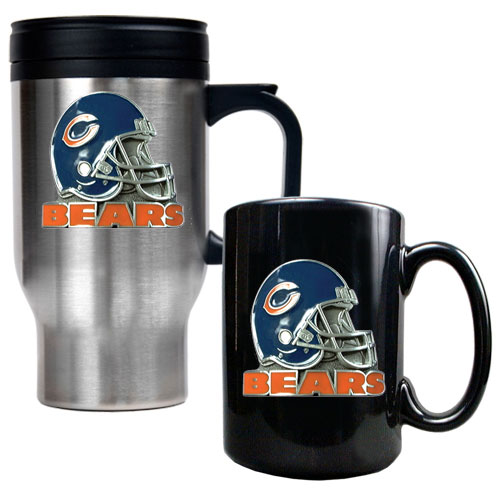 Chicago Bears NFL Travel Mug & Ceramic Mug Set - Helmet logo