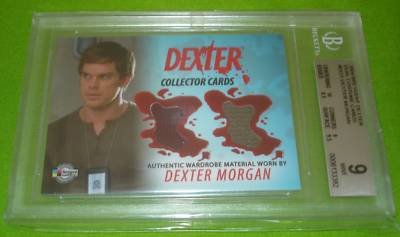 HERE I HAVE A DEXTER 3 CASE INCENTIVE CARD NUMBERED DCI-1 IT IS BRAND NEW AND IN ABSOLUTE MINT CONDITION! THIS AWESOME CARD WAS ONLY AVAILABLE TO DEALERS WHO BOUGHT MORE THEN 3 FACTORY SEALED TRADING CARD CASES! THIS AWESOME CARD HAS ALSO BEEN GRADED AND SLABBED BY BECKETT GRADING SERVICES WHICH MEANS THE CARD HAS BEEN ENCASED IN A HARD PLASTIC AND THE CARD HAS BEEN GRADED AS A 9 MINT! CENTERING 10, CORNERS 9, EDGES 8.5, SURFACE 9.5! THIS CARD HAS NEVER BEEN HANDLED! THE CARD ITSELF FEATURES 2 PIECES OF DEXTERS SHIRTS! AWESOME AND VERY RARE NOW! =)