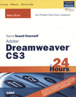 | Sams Teach Yourself Adobe Dreamweaver CS3 in 24 Hours   In just 24 lessons of one hour or less, you will be able to create a fully functional website using Adobe Dreamweaver CS3.  Using a straightforward, step-by-step approach, each lesson offers background knowledge along with practical steps to follow, allowing you to learn the essentials of using Dreamweaver from the ground up.   Table of Contents   Part I: Getting Started with Dreamweaver    1. A World Wide Web of Dreamweaver Possibilities    2. A Tour of Dreamweaver    3. Setting Up a Website    4. Dealing with Words: Adding Text and Lists    5. Adding Links: Hyperlinks, Anchors, and Mailto Links    6. Formatting Web Pages Using Cascading Style Sheets    7. Looking Under the Hood: Exploring HTML   Part II: Adding and Managing Images and Multimedia    8. Displaying Images    9. Complementing Dreamweaver with Other Applications   10. Adding Flash and Other Multimedia to a Web Page   11. Managing Assets Using the Assets Panel   Part III: Web Page Layout   12. Displaying Data in Tables   13. Using CSS for Positioning   14. Creating CSS for Mobile Devices and Printing   15. Creating Library Items and Templates   Part IV: Dynamic HTML and AJAX: Using AP Divs, Behaviors, and XML   16. Adding Navigation: Navigation and Menu Bars   17. Using Dynamic HTML and AP Divs   18. Adding Interactivity with Behaviors   19. Displaying Content and XML Using the Spry Framework   Part V: Collecting User Data Using Forms   20. Creating a Form and Collecting Data   21. Introduction to Scripts: Sending and Reacting to Form Data   Part VI: Uploading a Project and Managing a Website   22. Uploading and Sharing a Project on the Web   23. Managing and Editing a Website   24. Customizing Dreamweaver   Salient Features   Easy-to-follow advice helps user quickly build a dynamic website. Shows how to add interactivity with CGI scripts, PHP, JavaScript, applets, and controls.