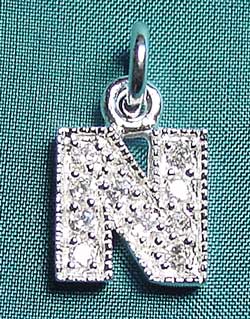 Sparkling N initial letter charm with cubic zirconia accents.- Width: 10 mm (3/8 in)