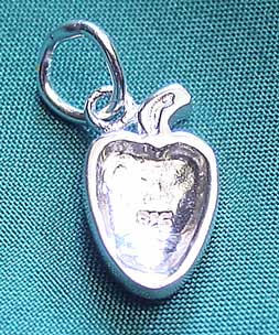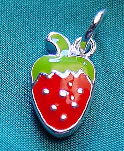 Sterling silver strawberry charm with red and green enamel.- Width: 8 mm (3/8 in)