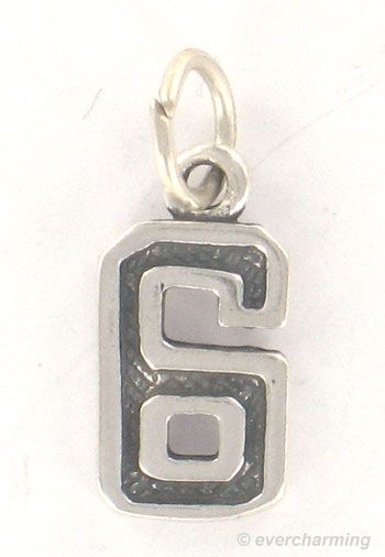 Sporty sterling silver number 6 charm. - Width: 7 mm (1/4 in)