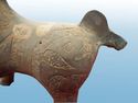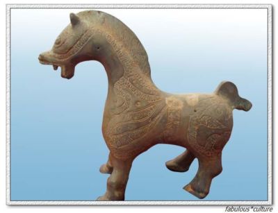 lots of beautiful carven design on the body of the horse. It's a lusty horse. So many
