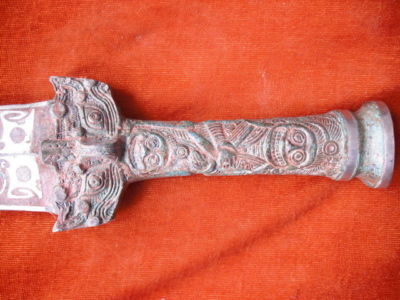 So wonderful and nice collection! You are bidding a bronze sword knife, it was used in the battle in old China. There were lots of battles among many countries land subdivision. As a matter of fact, the battle is a symbol of the age of progress. In this way, people had to manufacture different kinds of weapons,such as, sword,blade,glave,knife,dagger,dirk and so on.So many arms don't only be used in the war,but also to protect themselves.At last, sharp and delicate swords appeared in that date. So many precious and rare items have enough collectable value. In addition, they as a symbol of the traditional Chinese culture. Please get it and learn much brilliant culture!Good luck!