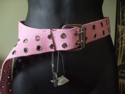 STEVE MADDEN PINK BELT WITH LOGO PENDANT ACCENT. GREAT WITH JEANS OR CASUAL OUTFITS.