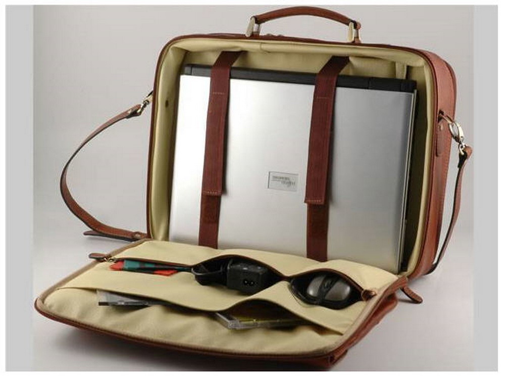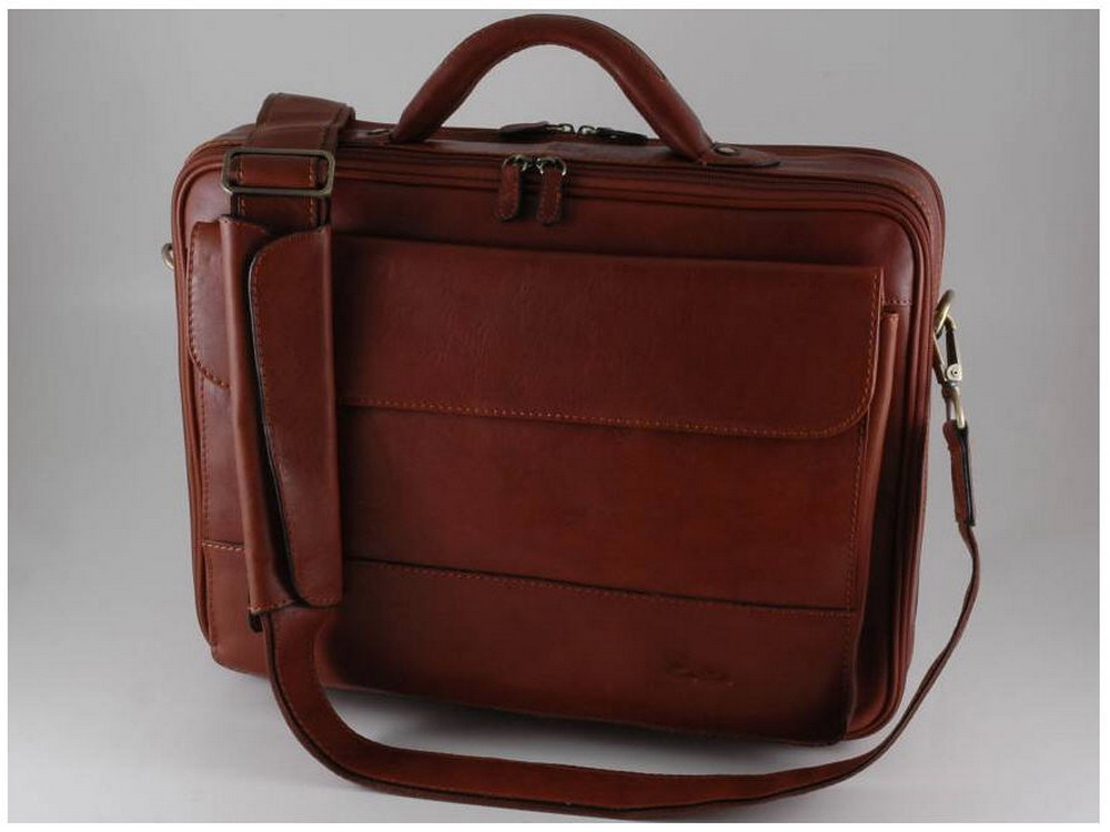 If you are a traveling professional, the exclusive Vicenza leather laptop case is the perfect travel accessory. Vicenza’s quality outer structure is handcrafted from “genuine” polished calfskin leather. The interior of the case is lined in peccary skin leather, providing long-lasting durability. The Vicenza laptop case features two main interior compartments, a flash drive holder ring, an inside zip pocket, an organizer holder, a multifunction pocket, a pen holder, and a convenient mobile phone holder. For your travel convenience, Vicenza has two openings on the backside that enables it to be attached to the extended handles of a travel trolley. The exterior of this exclusive Vicenza laptop case also has a roomy front pocket and a secure zip closure. Vicenza was designed to hold a 17” laptop and features an inside divider to keep your accessories separate. This exclusive laptop case is shock absorbent and comes with protective metal feet on the bottom for added protection. Vicenza has both a comfortable leather handle and an adjustable leather shoulder strap that can be easily detached for cleaning.