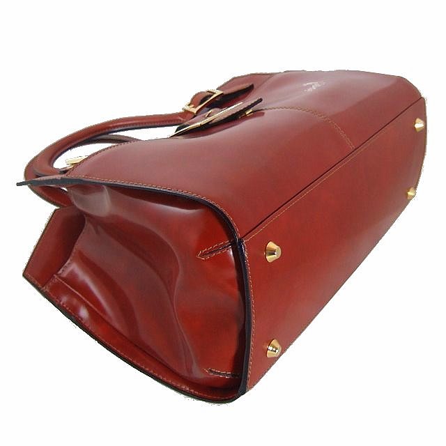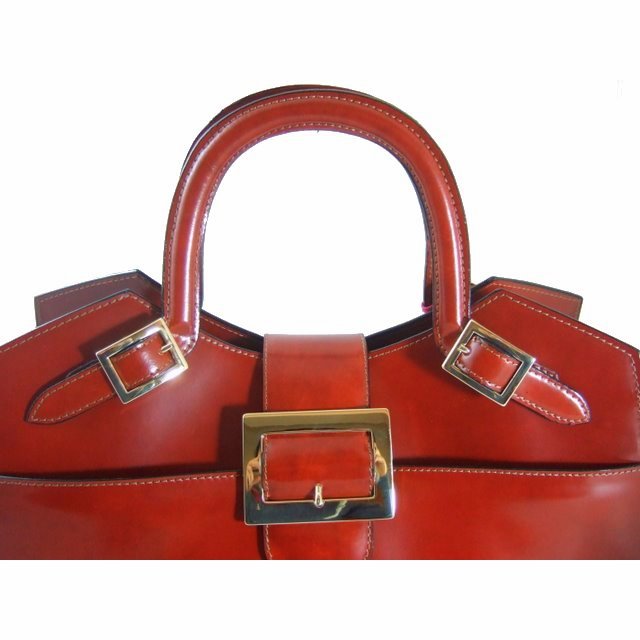 This high class polished hand printing leather bag have 2 open sectors inside, more one closed by velco. Also inside there are 2 zip pockets and a set of organizer for mobile phone, pens and cards. Closes is by magnetic bottom put under central buckle. Outside there are 2 useful open pockets. In bottom 4 metal rivets. Equipped with removable strap and internal light. Dust bag included.